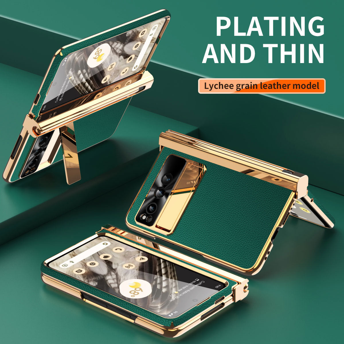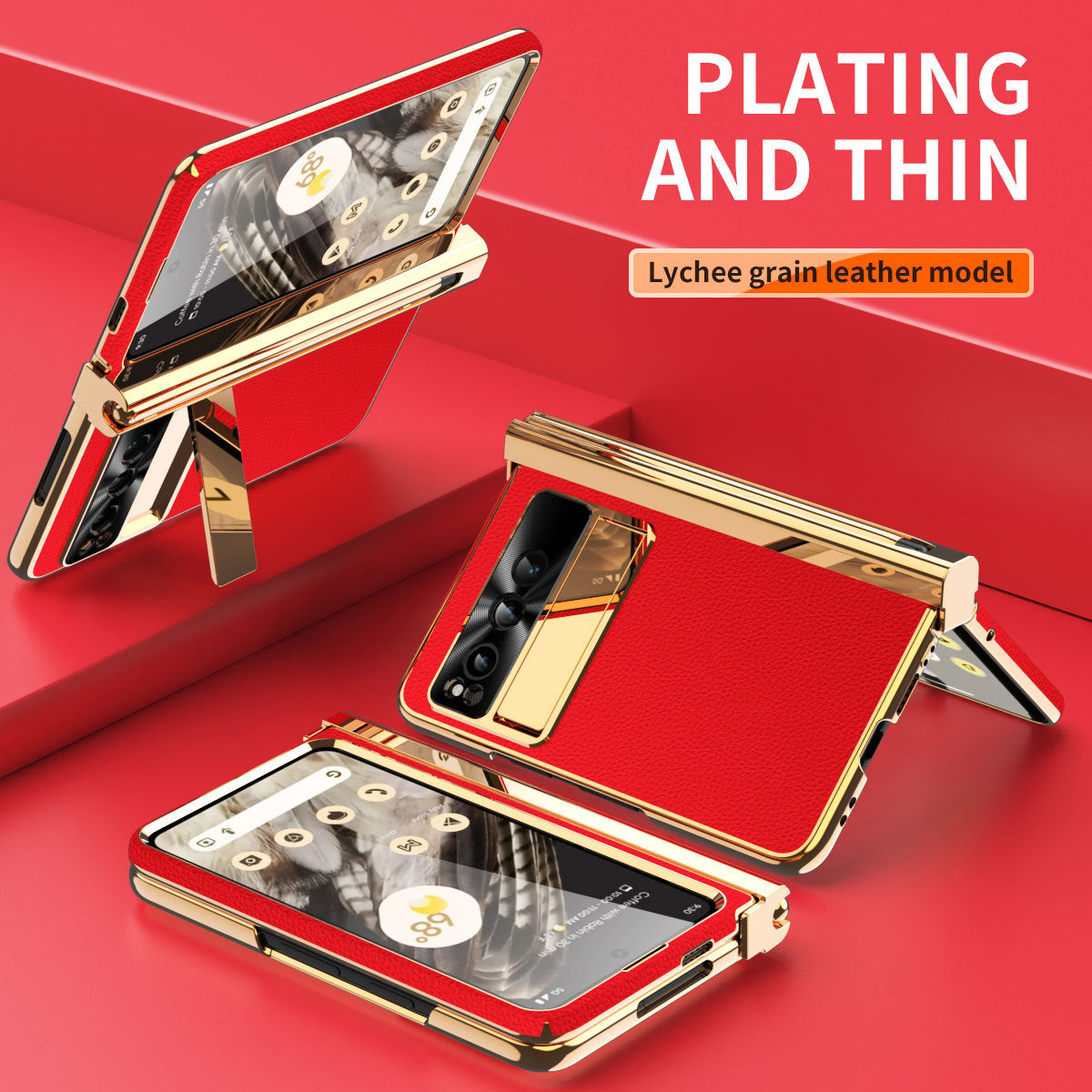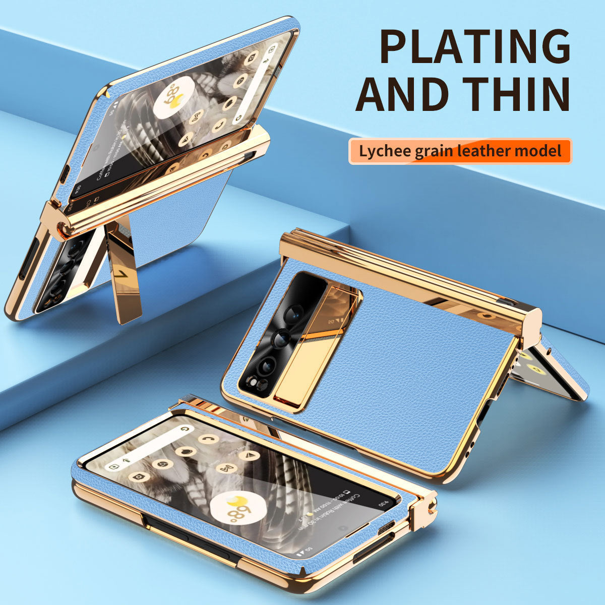 Electroplated Leather Google Pixel Fold Case with Dual Hinge Protective Screen Protector and Hidden Kickstand Pen Slot Free Stylus