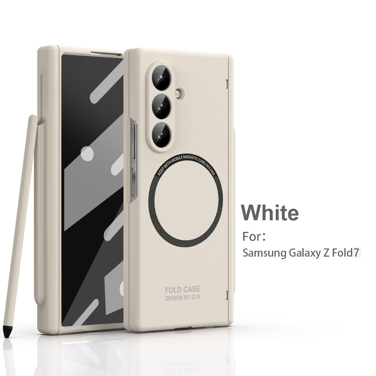 Frosted Silicone Magnetic Hinge Protective Phone Case With Pen Slot & Stylus & Glass Film For Galaxy Z Fold Series
