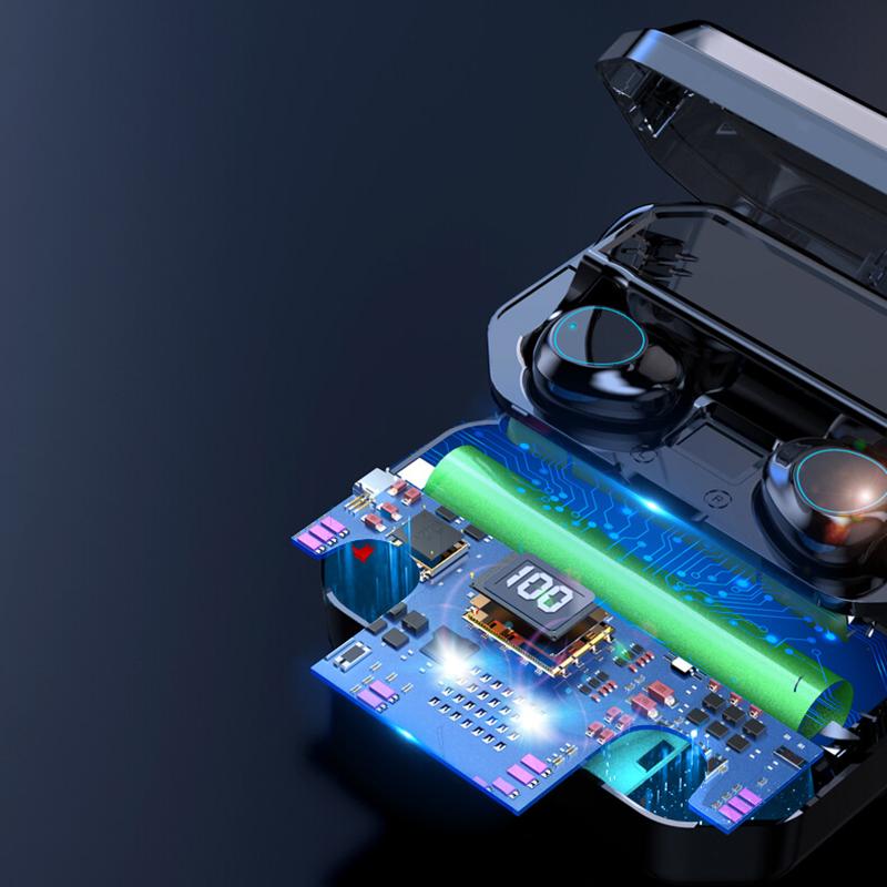 Longer battery life: (G02) Up to 4 hours of playback when the headset is fully charged. The portable mobile power supply can charge the earbuds 20 times again. The total match time can be up to 80 hours.