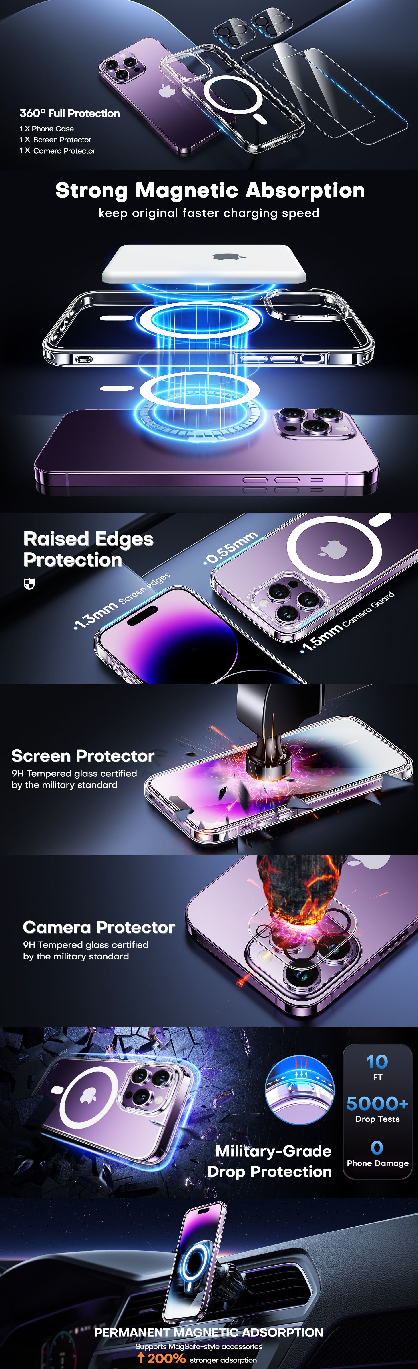 Magnetic Magsafe Clear Protective iPhone Case With Screen Protector Film & Lens Film