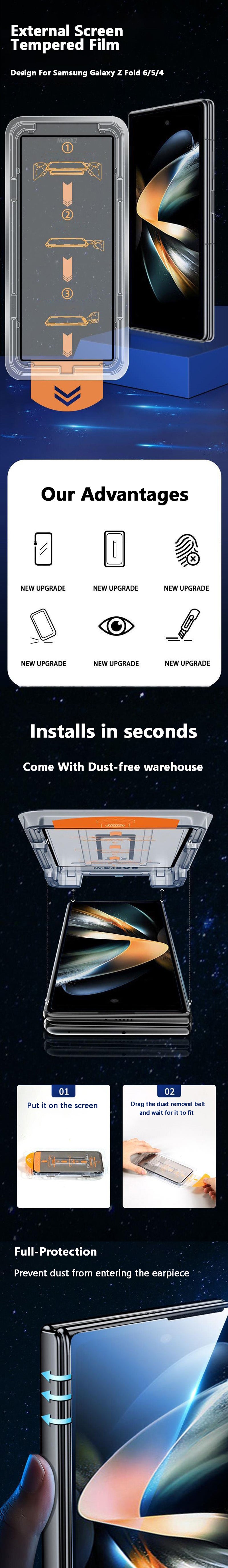 Simplify your screen protector installation with our Bubble-free & dust-free technology. Bid farewell to the frustration of air bubbles and dust interfering with the pristine look of your Samsung Galaxy Z Fold external screen. Our easy install technology ensures a smooth